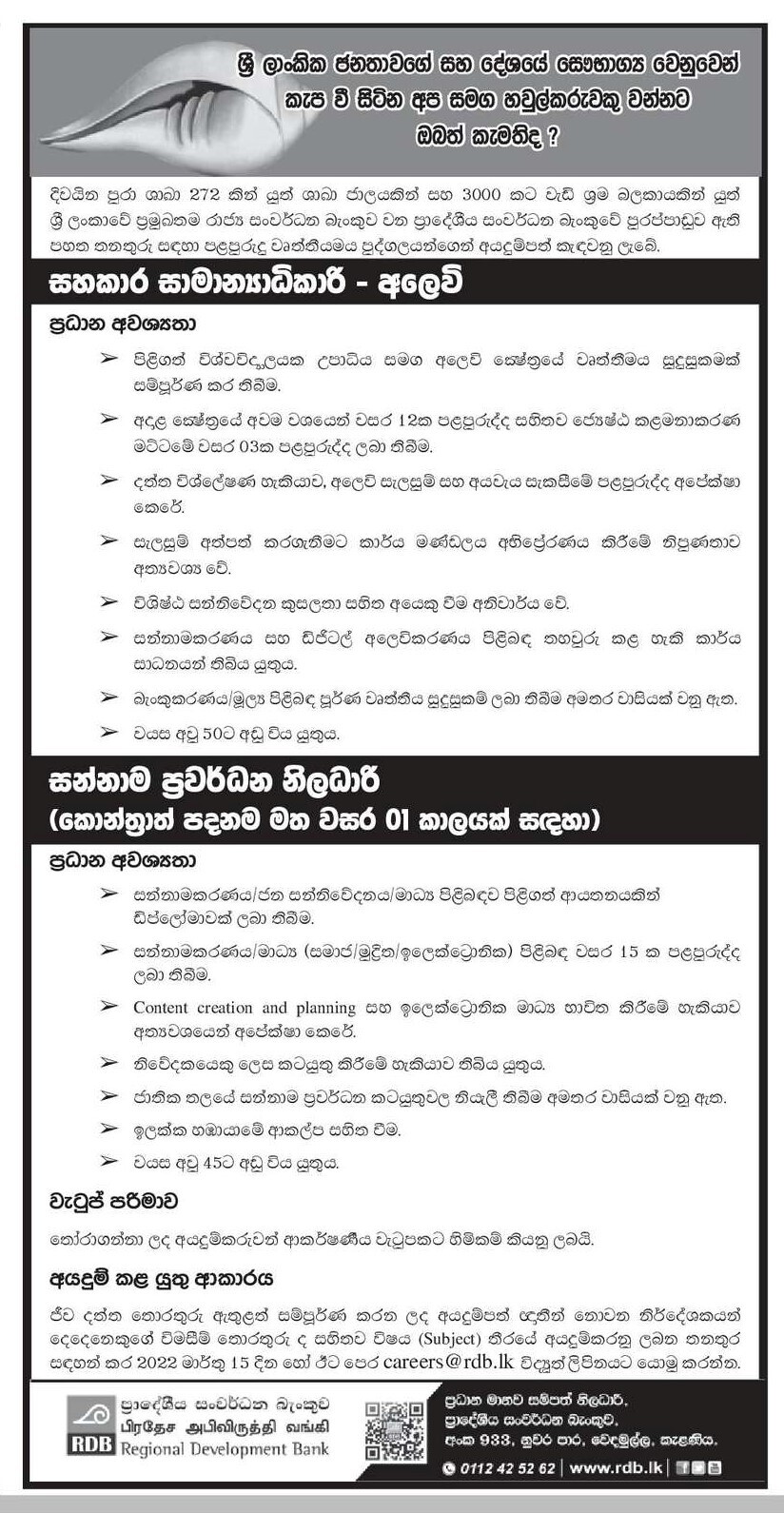 Assistant General Manager, Brand Development Officer - Regional Development Bank