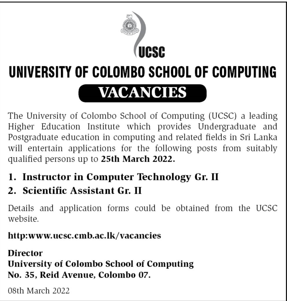 Instructor, Scientific Assistant - University of Colombo School of Computing