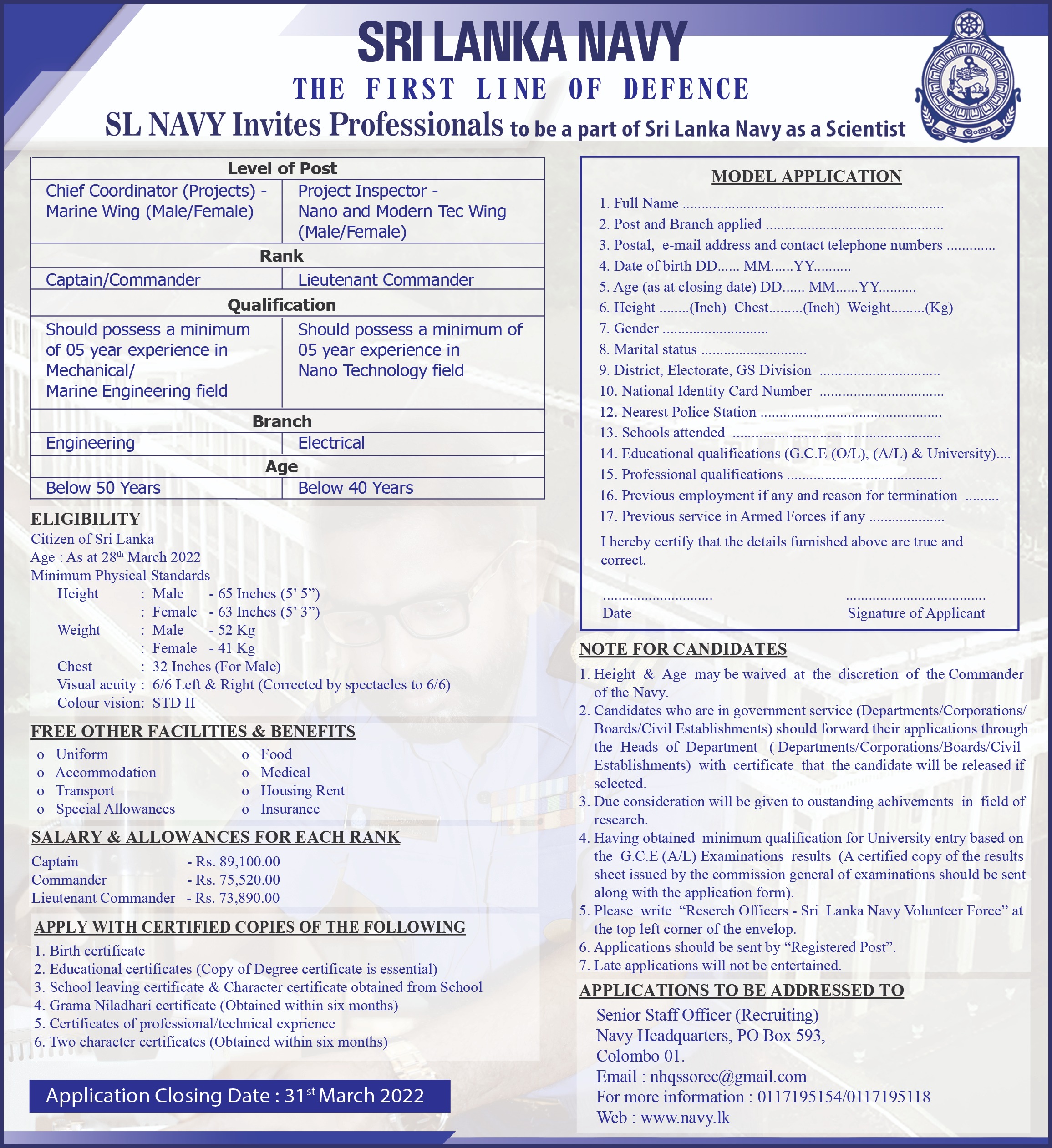 Chief Coordinator, Project Inspector - Sri Lanka Navy