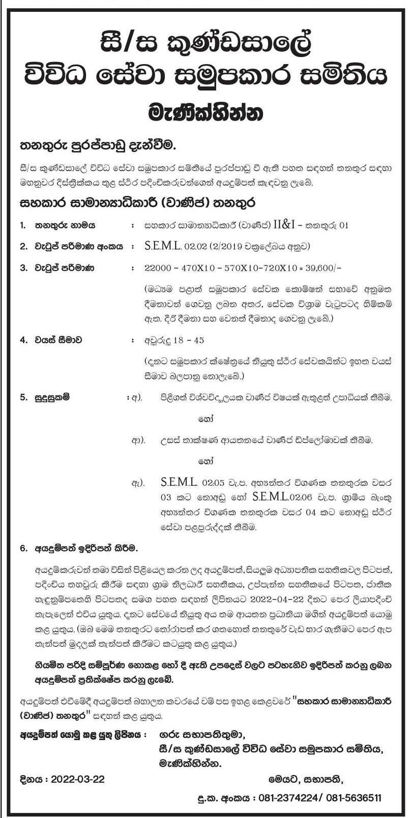 Assistant General Manager - Kundasale Multi Purpose Co-operative society Ltd