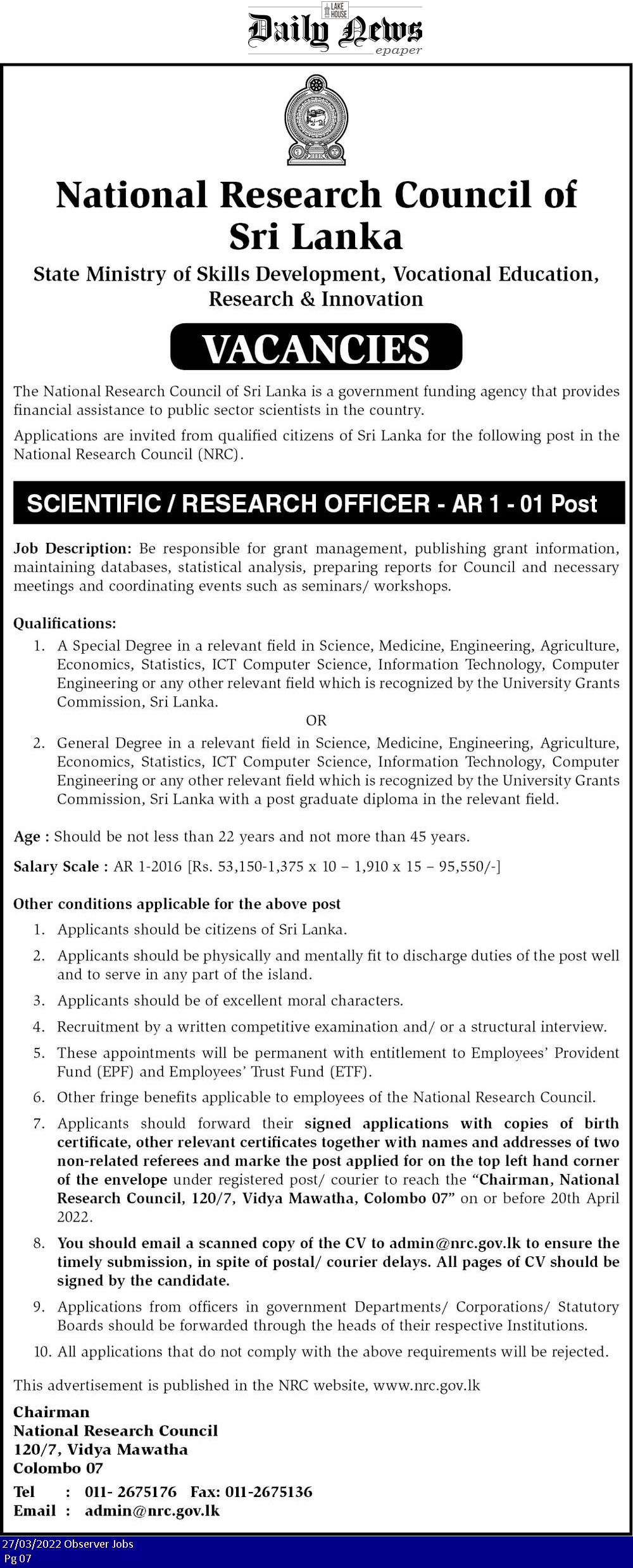 Research Officer - National Research Council