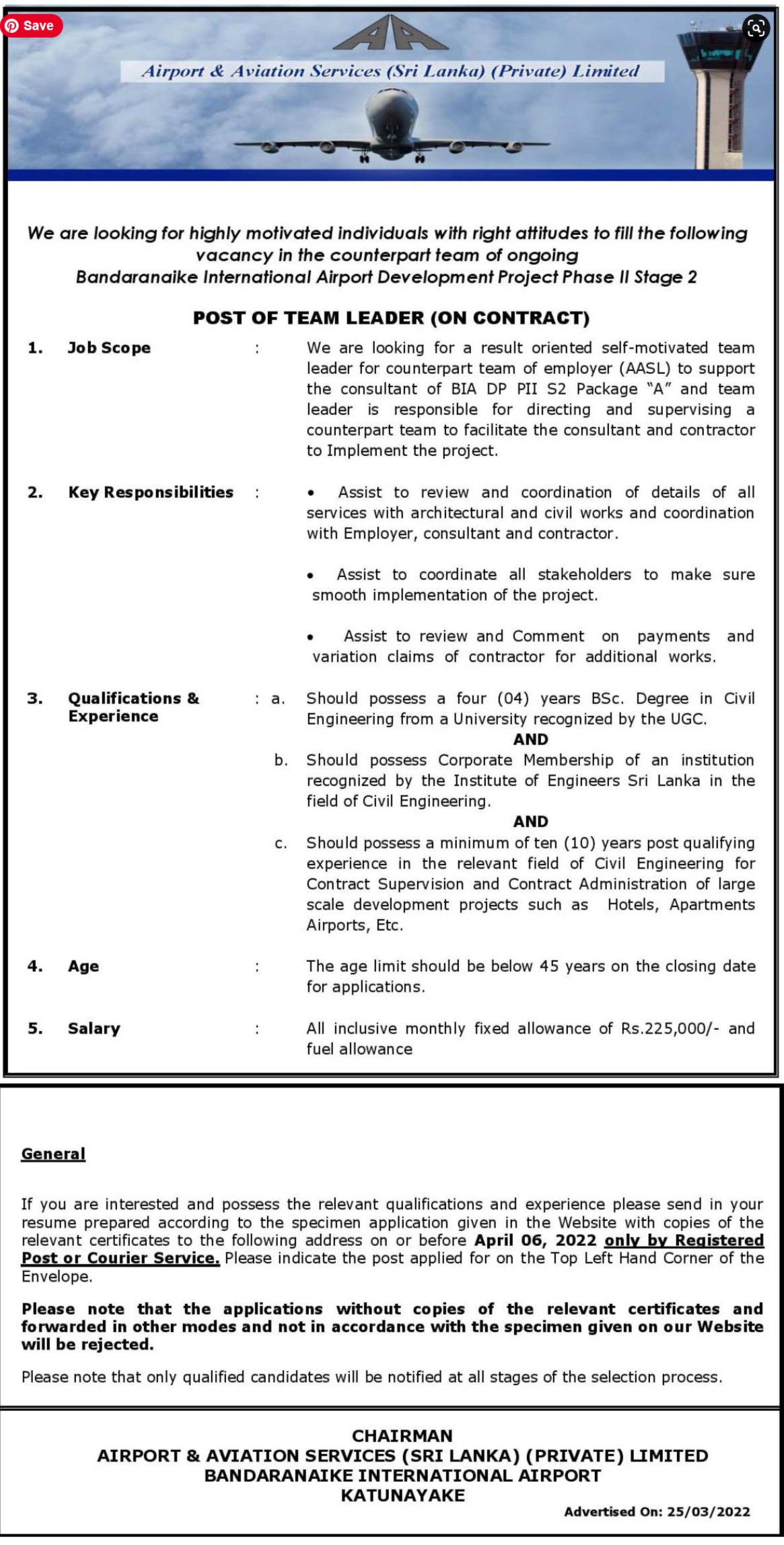 Team Leader - Airport and Aviation Services (Sri Lanka) Ltd