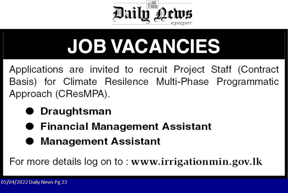 Draughtsman, Assistant Finance Manager, Management Assistant - Ministry of Irrigation