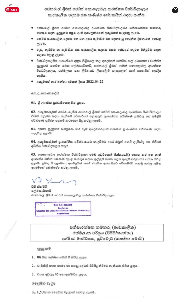 Sanitary Labour - General Sir John Kotelawala Defence University