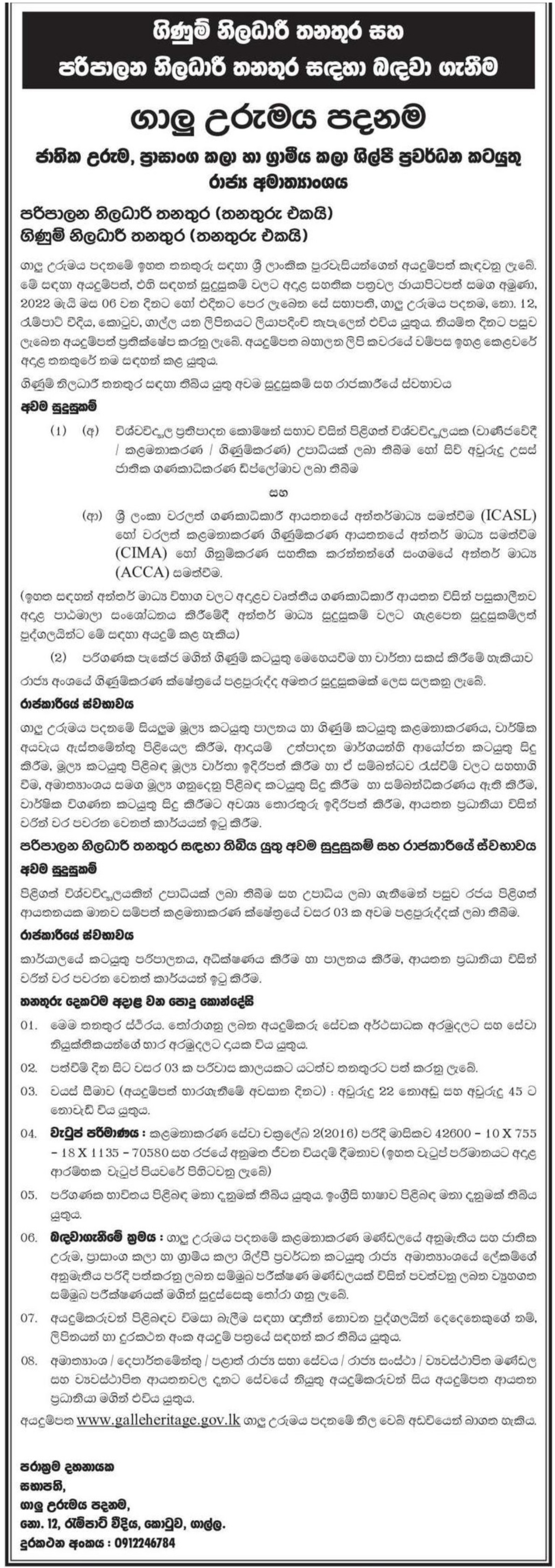 Accounts Officer, Administrative Officer - Galle Heritage Foundation