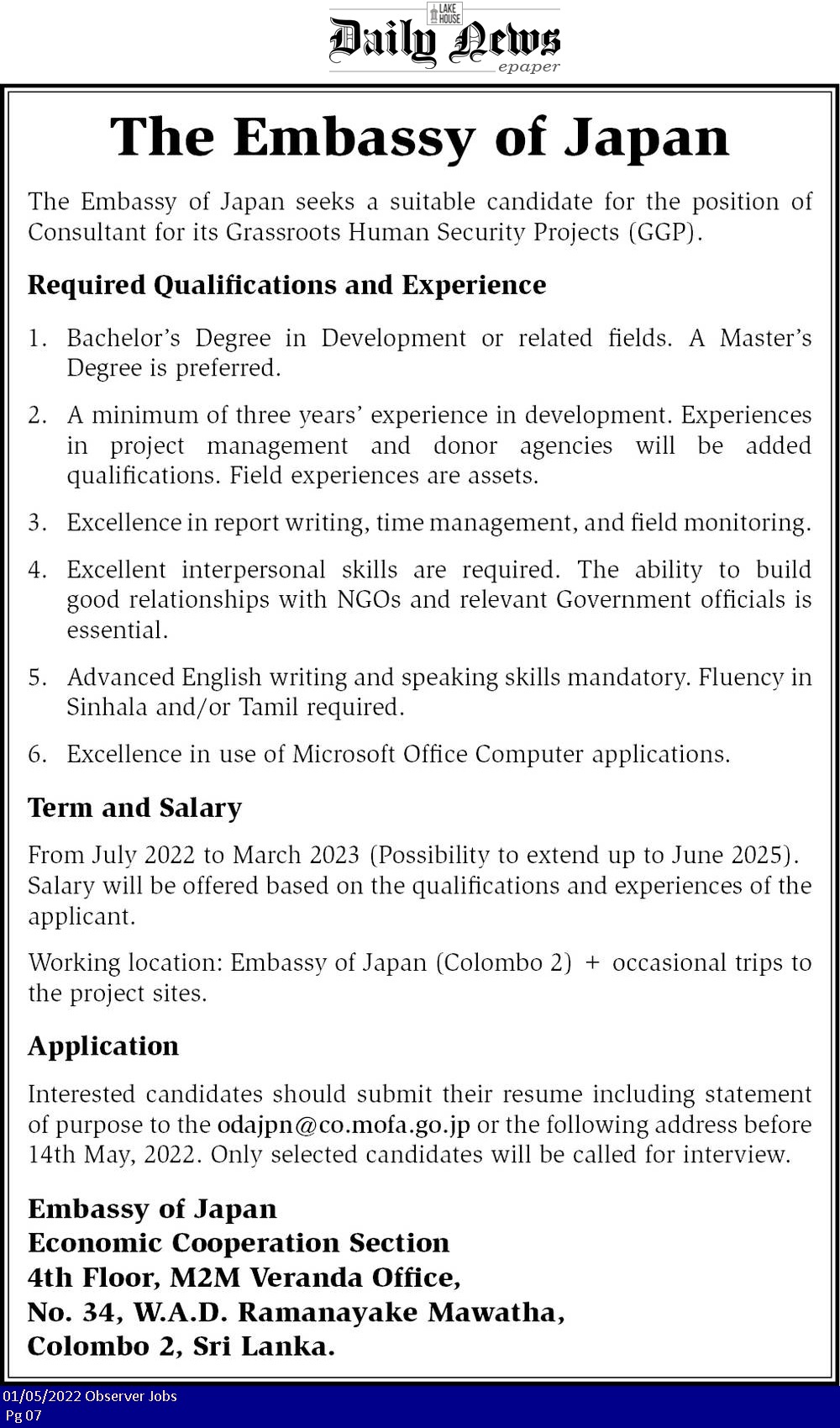 Consultant - Embassy of Japan
