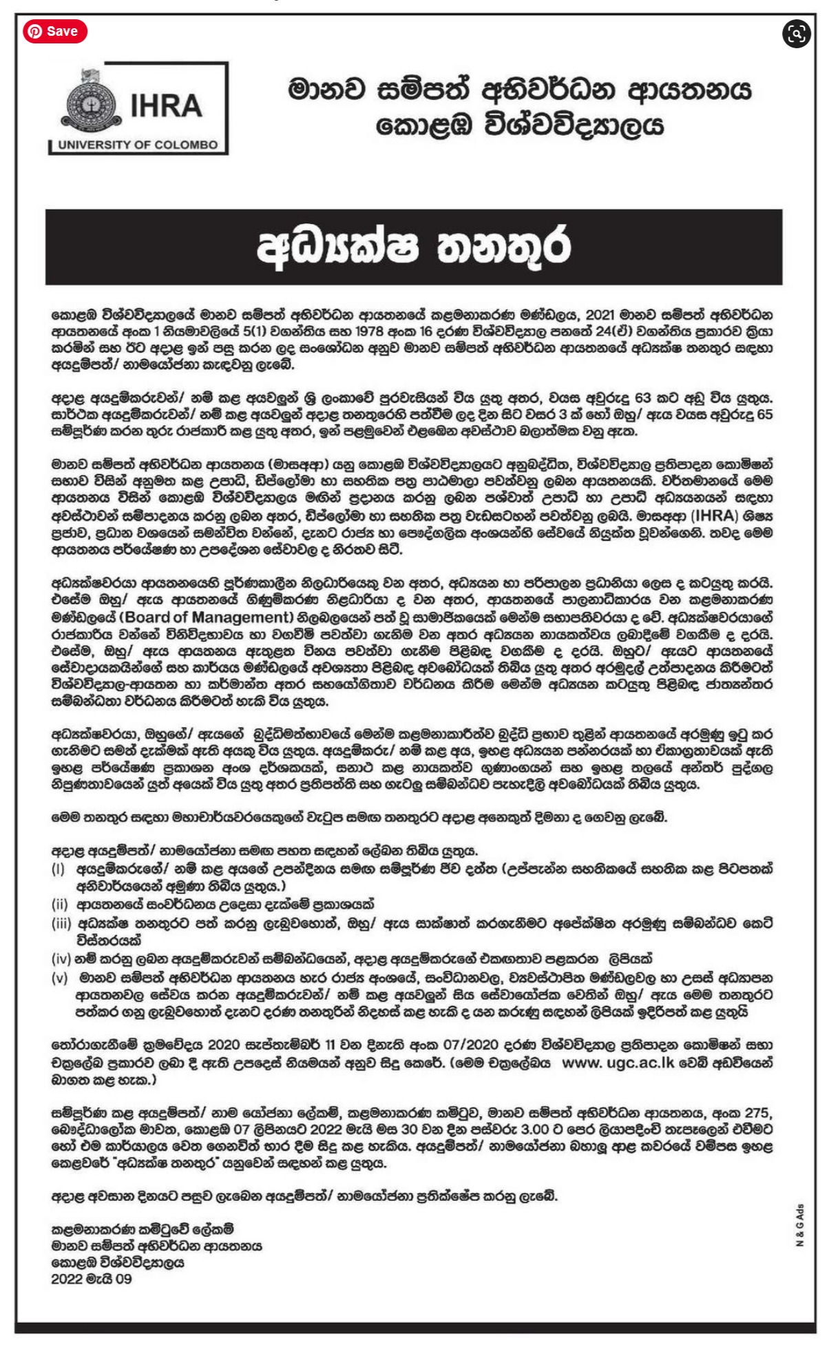Director - University of Colombo