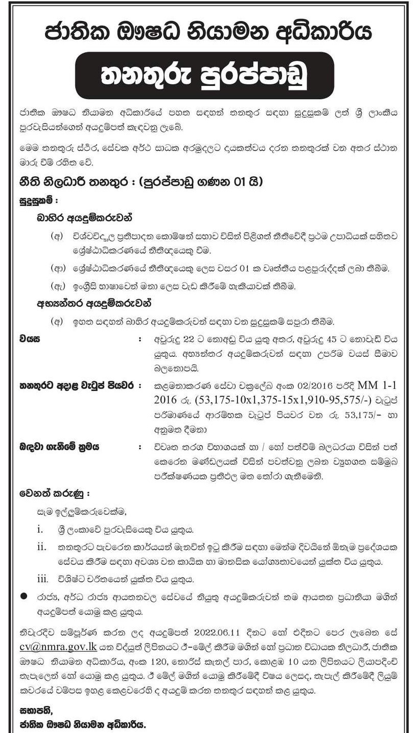Legal Officer - National Medicine Regulatory Authority