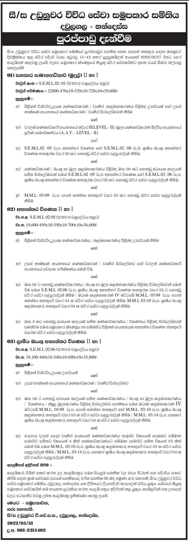 Assistant General Manager, Internal Auditor - Udunuwara Multi Purpose Co-operative Society Ltd