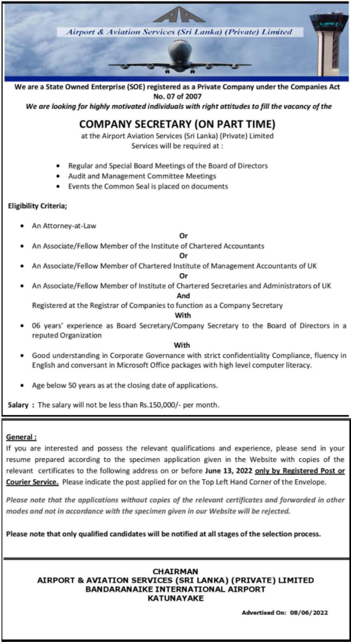 Company Secretary - Airport & Aviation Services (Sri Lanka) Limited
