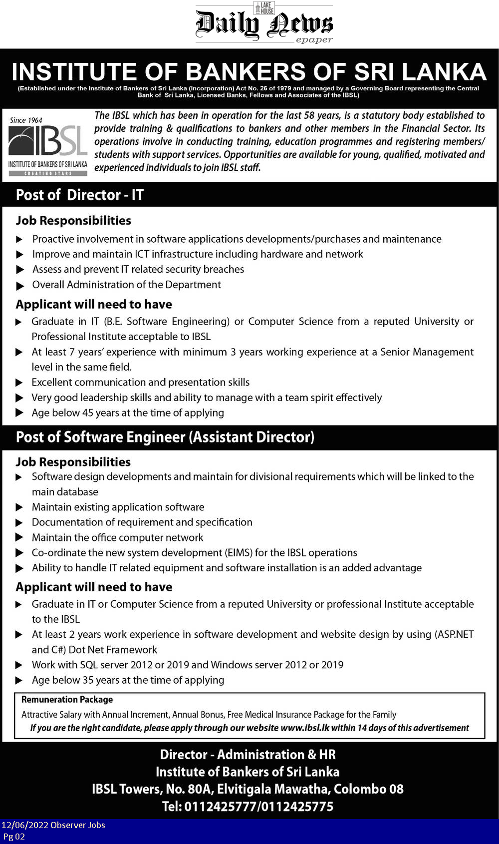 Director, Software Engineer - Institute of Bankers Of Sri Lanka