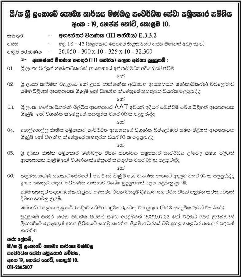 Internal Auditor - Health Staff Development Services Co-operative Society of Sri Lanka