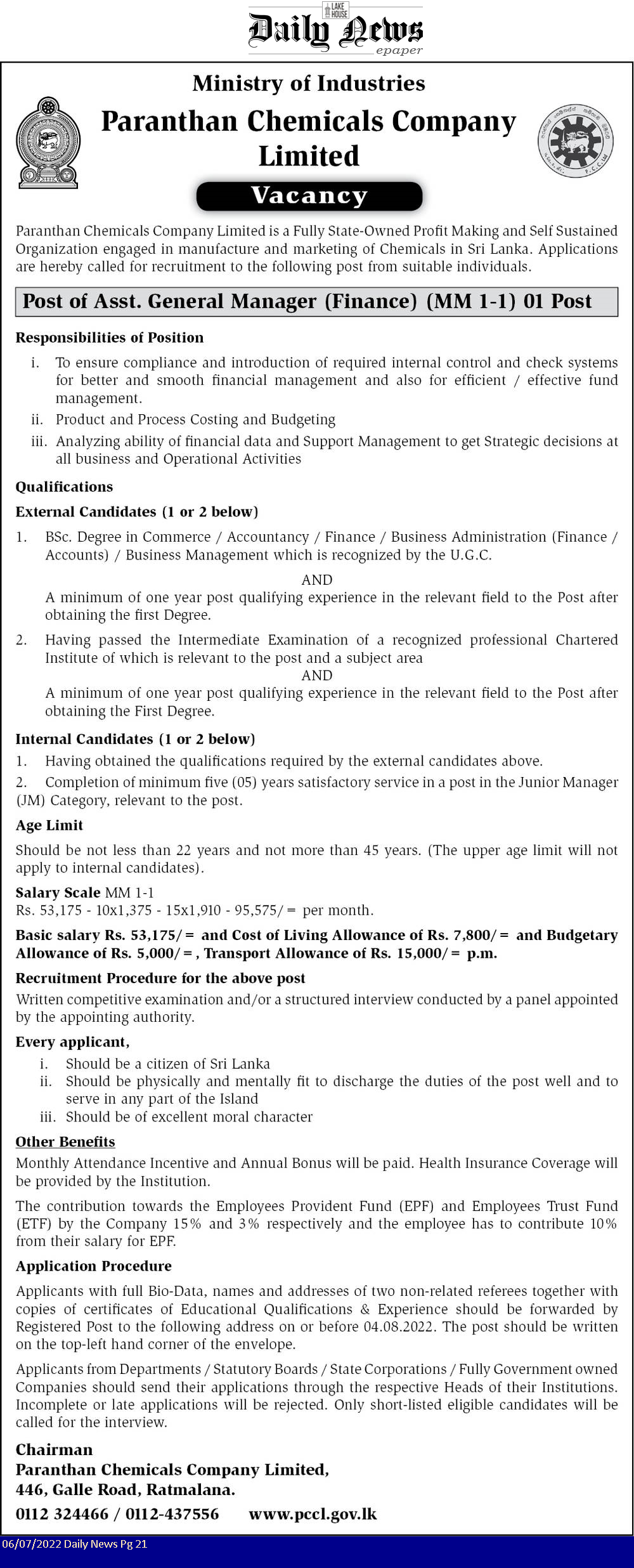 Assistant General Manager - Ministry of Industry