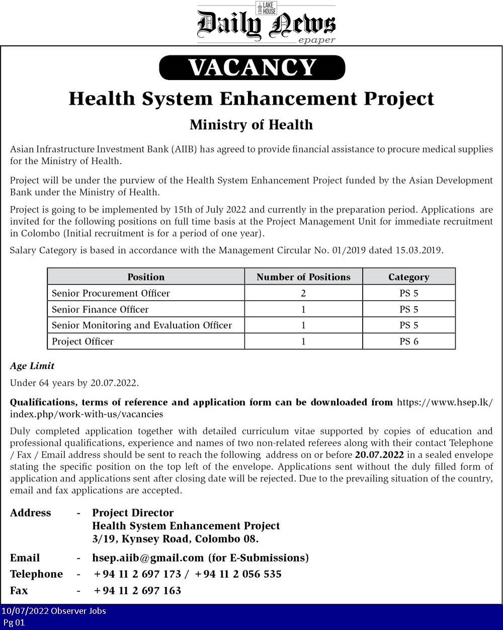 Senior Procurement Officer, Senior Financial Officer - Ministry of Health