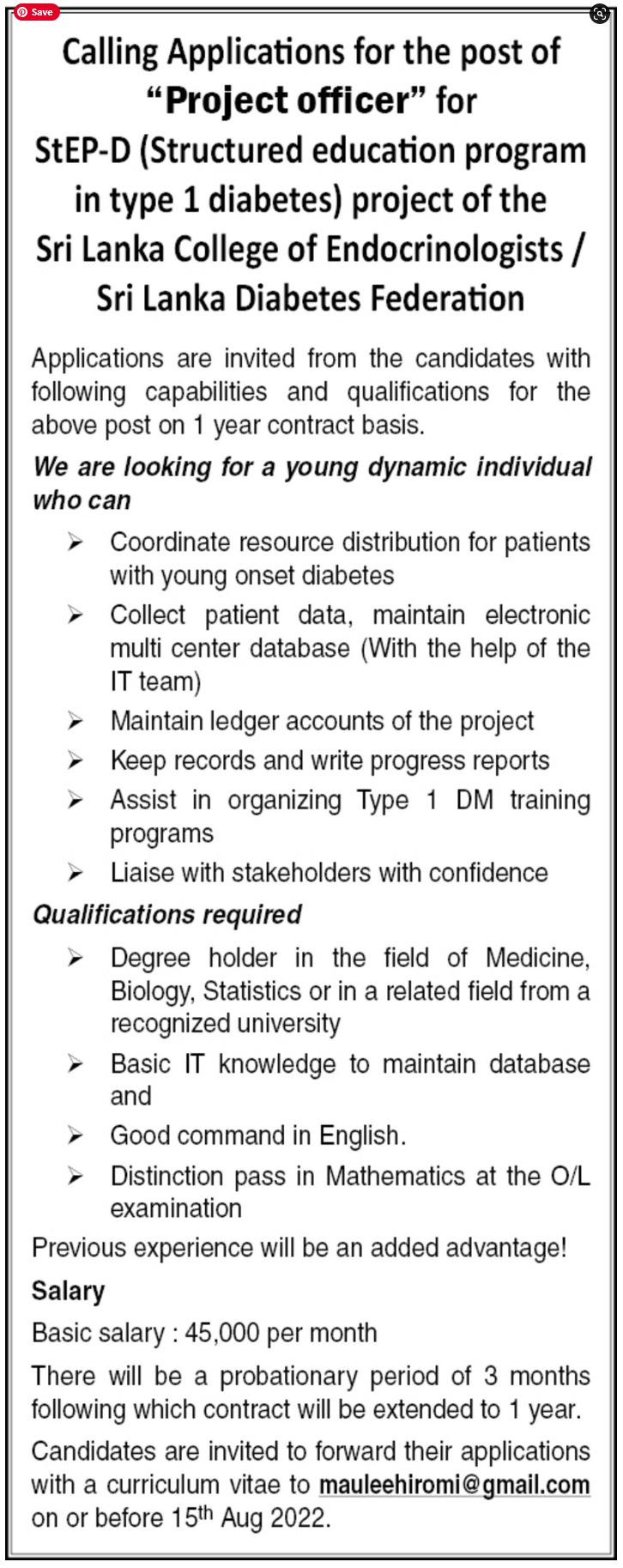 Project Officer - Sri Lanka Diabetes Federation