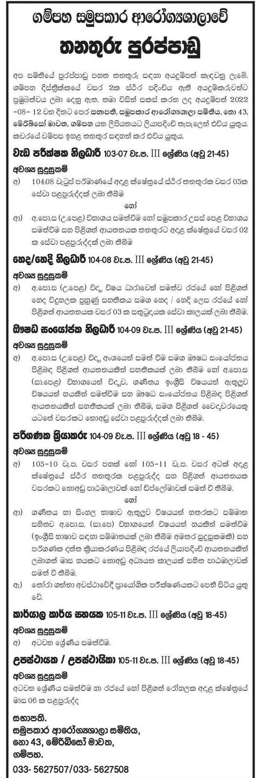 Work Inspector Officer, Nurse, Nursing Officer - Gampaha Cooperative Hospital