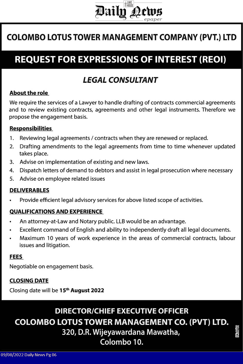 Legal Consultant - Colombo Lotus Tower
