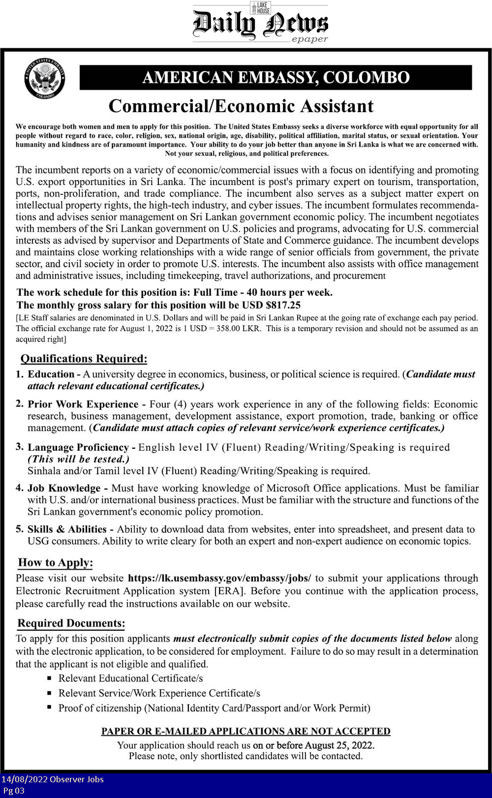 Commercial Assistant - American Embassy
