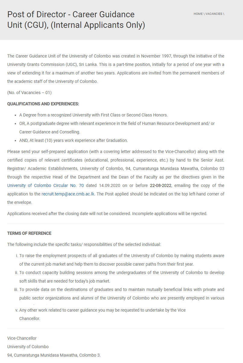 Director - University of Colombo