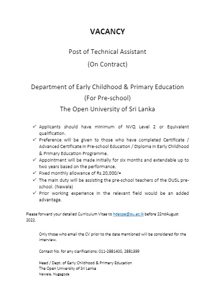 Technical Assistant - Open University of Sri Lanka