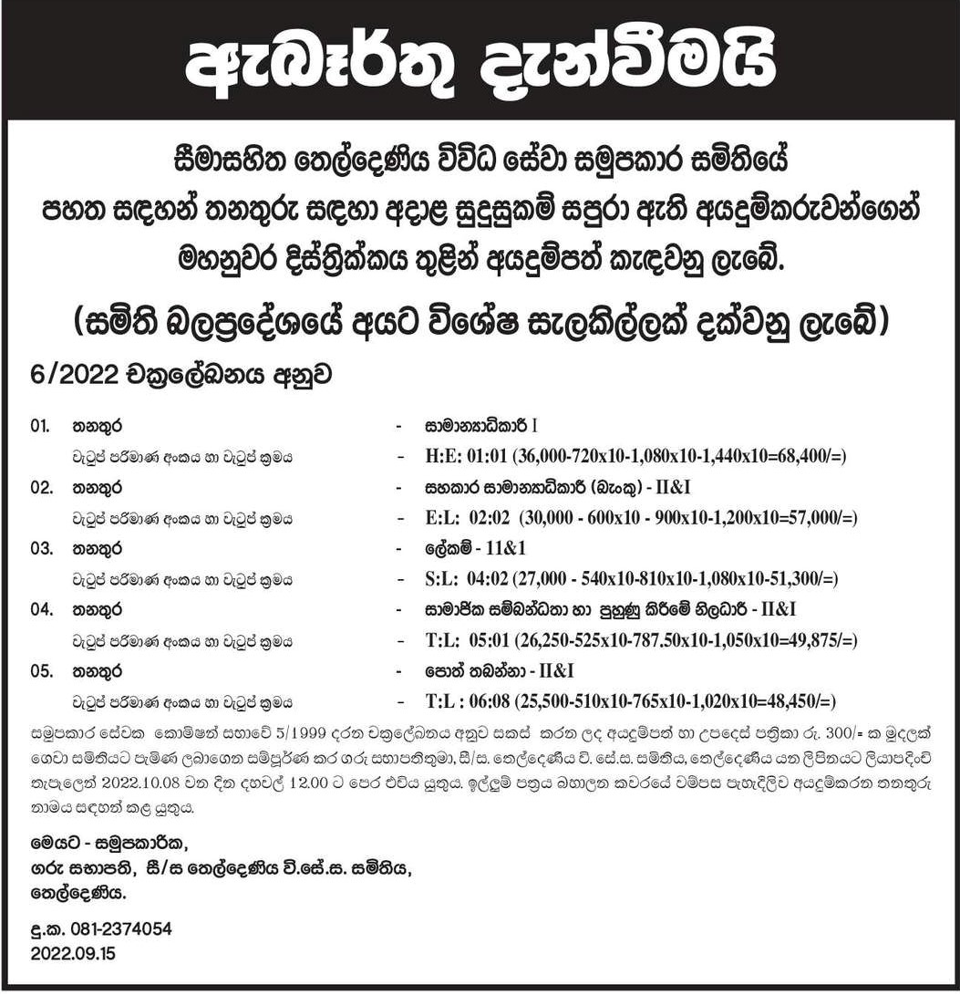 General Manager, Assistant General Manager - Teldeniya Multipurpose Co-operative Society Limited