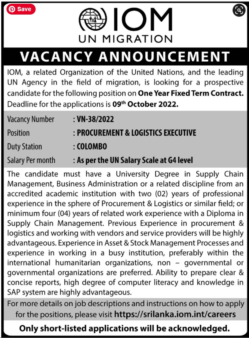 Procurement & Logistics Executive - International Organization for Migration