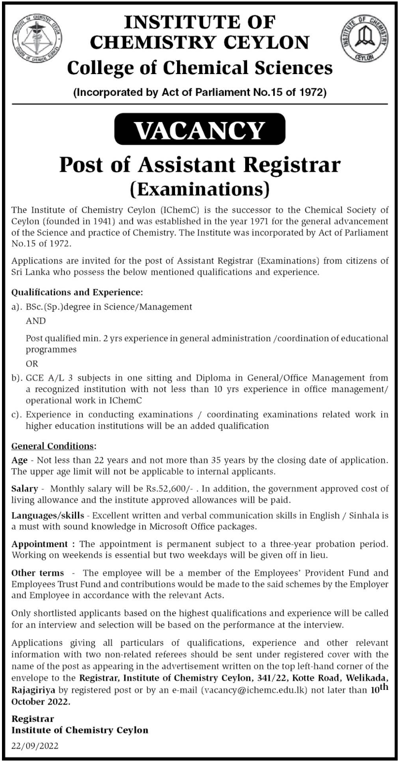 Assistant Registrar - Institute of Chemistry Ceylon