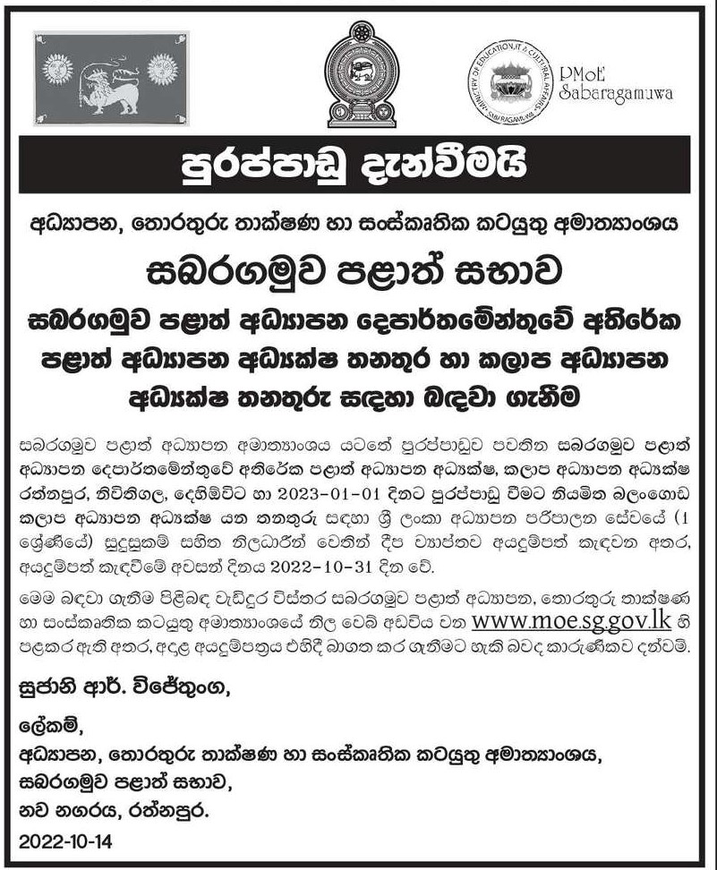 Additional provincial Director, Zonal Director - Sabaragamuwa Provincial Council