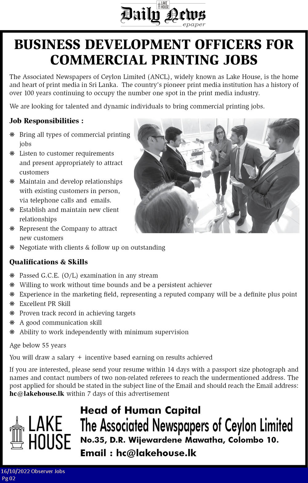 Business Development Officer - Associated Newspapers of Ceylon Limited