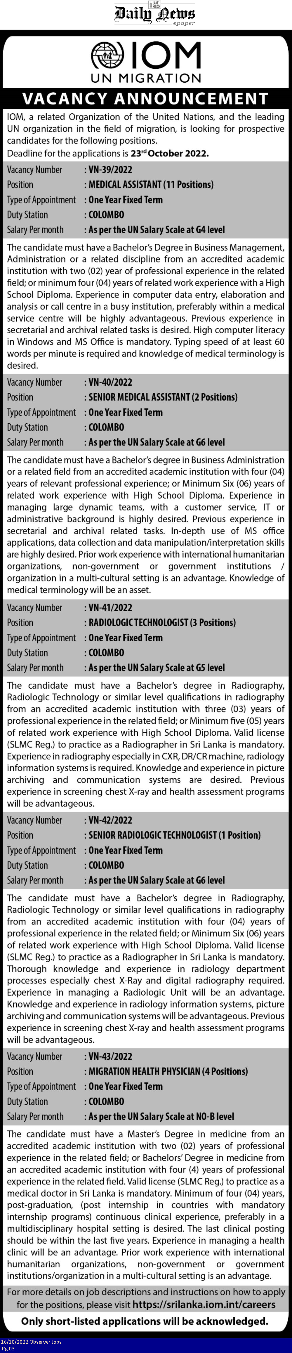 Medical Assistant, Radiologic Technologist - International Organization for Migration