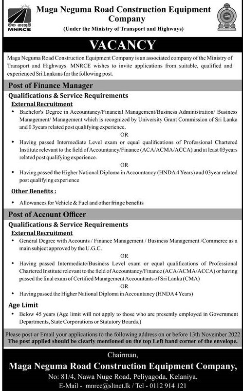 Finance Manager, Accounting Officer - Maga Neguma Road Construction Equipment Company