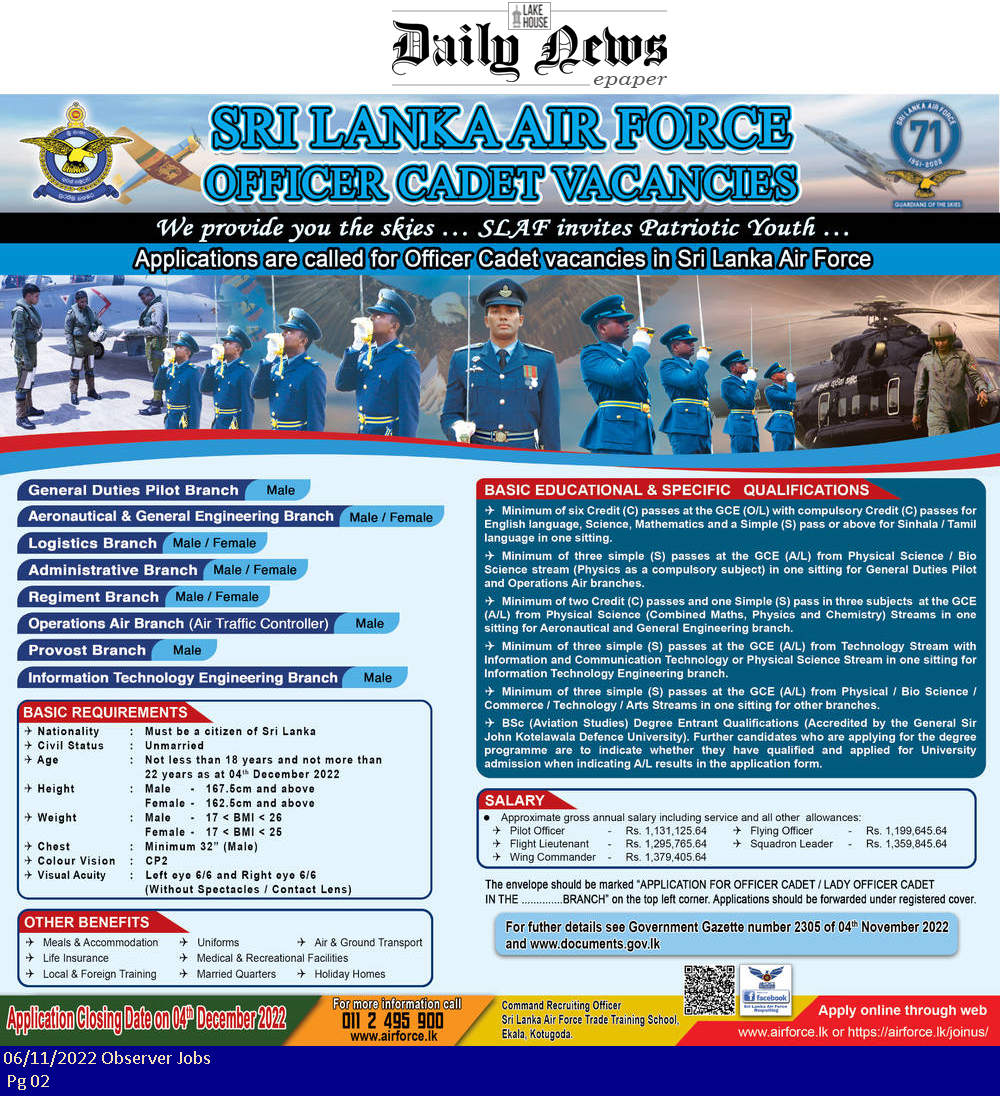 Cadet Officer, Lady Cadet Officer - Sri Lanka Air Force