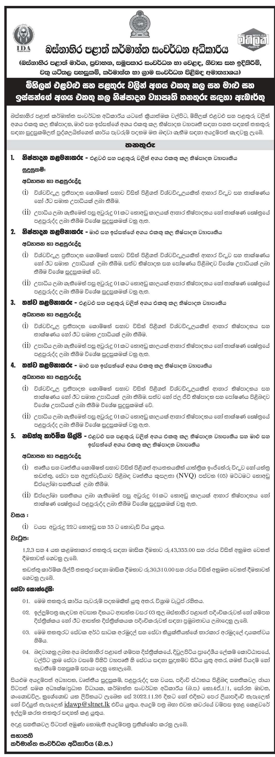 Production Manager, QA Manager, Maintenance Technician - Western Province Industrial Development Authority