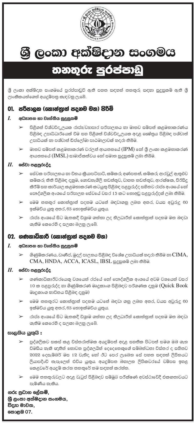 Administrator, Accountant - Sri Lanka Eye Donation Society