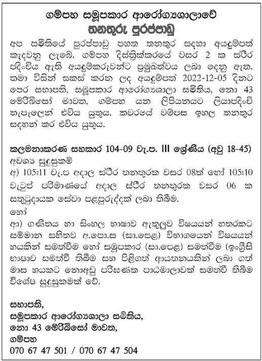 Management Assistant - Gampaha Cooperative Hospital