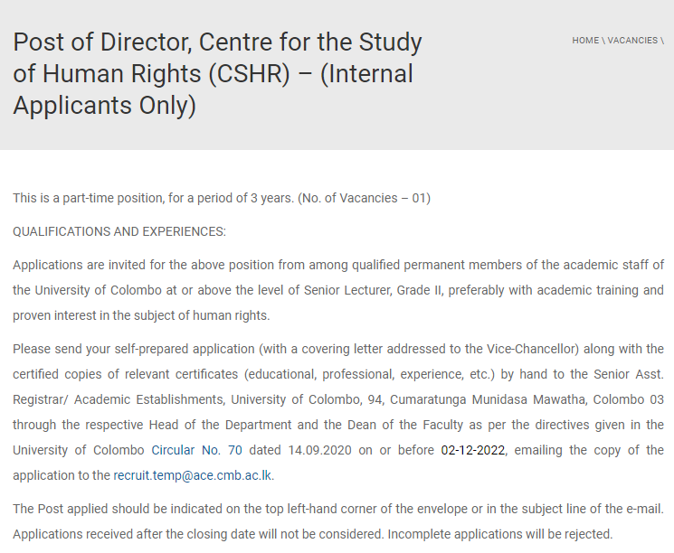 Director - University of Colombo
