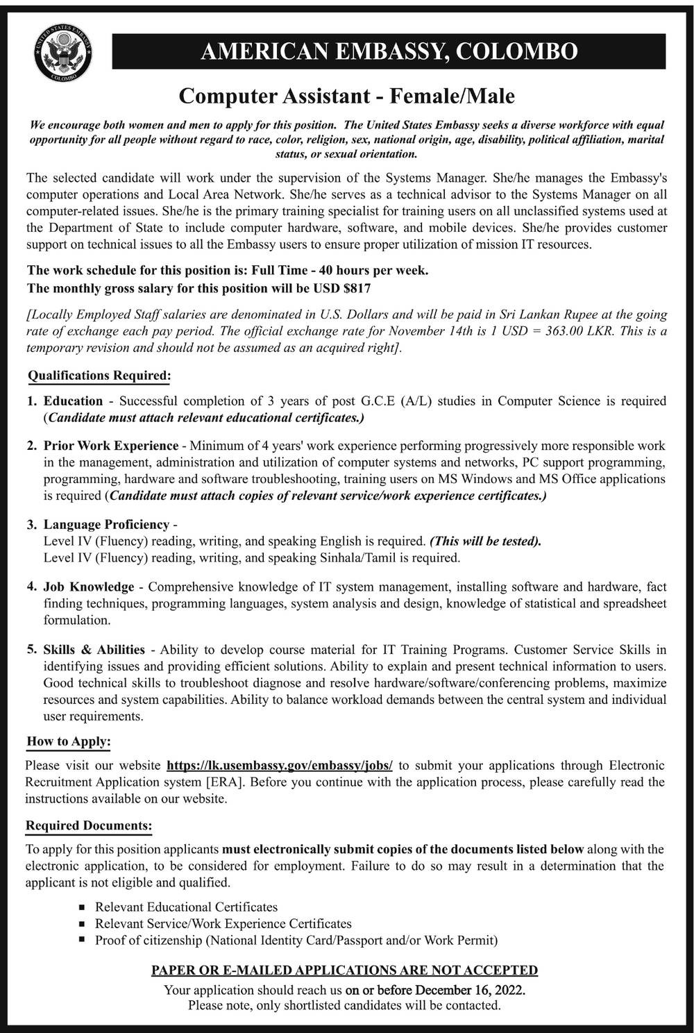 Computer Assistant - American Embassy