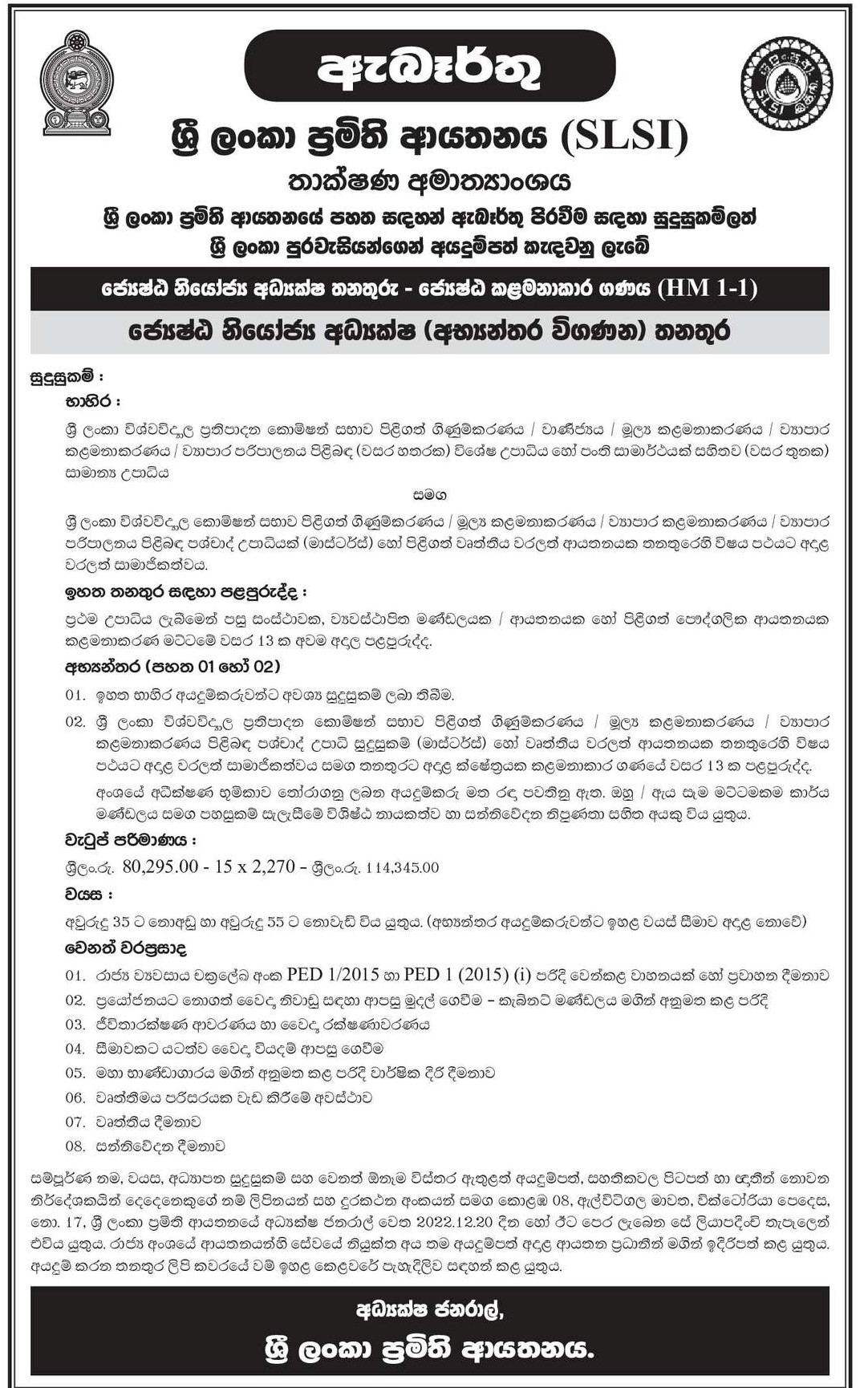 Senior Deputy Director (Internal Auditor) - Sri Lanka Standards Institution