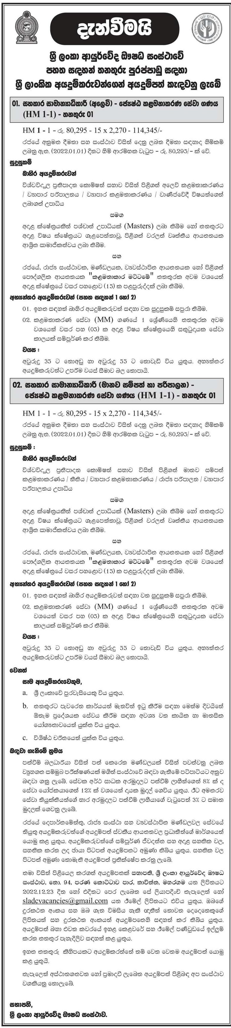Assistant General Manager - Sri Lanka Ayurvedic Drugs Corporation