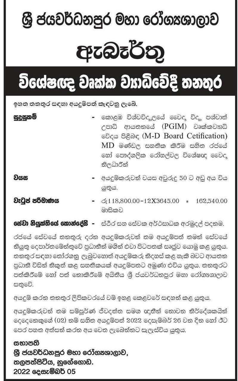Consultant Nephrologist - Sri Jayewardenapura General Hospital