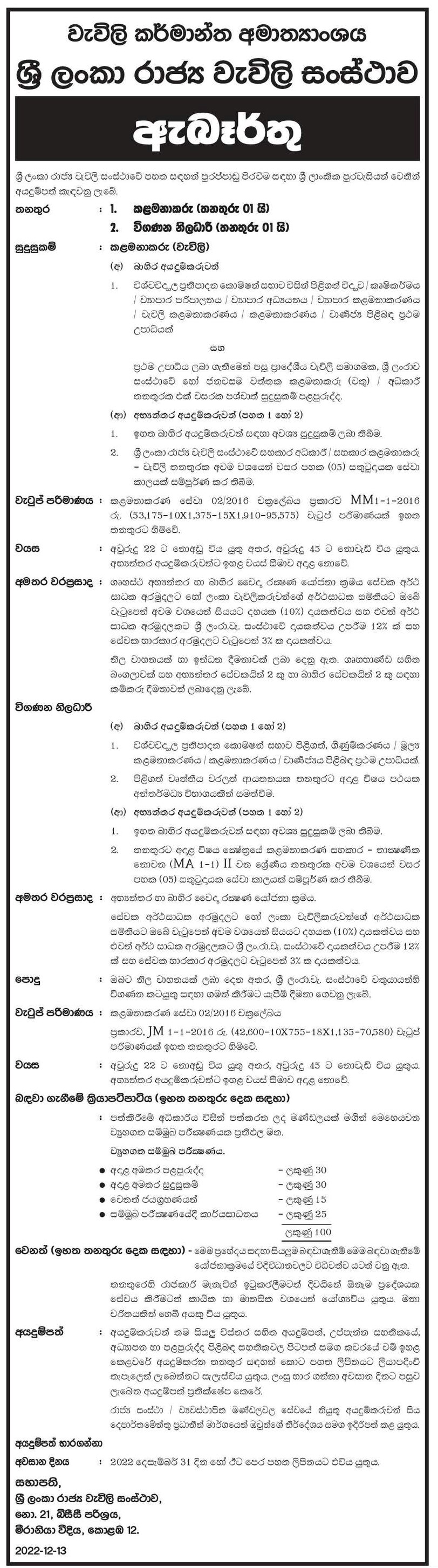 Manager, Internal Audit Officer - Sri Lanka Plantations Corporation