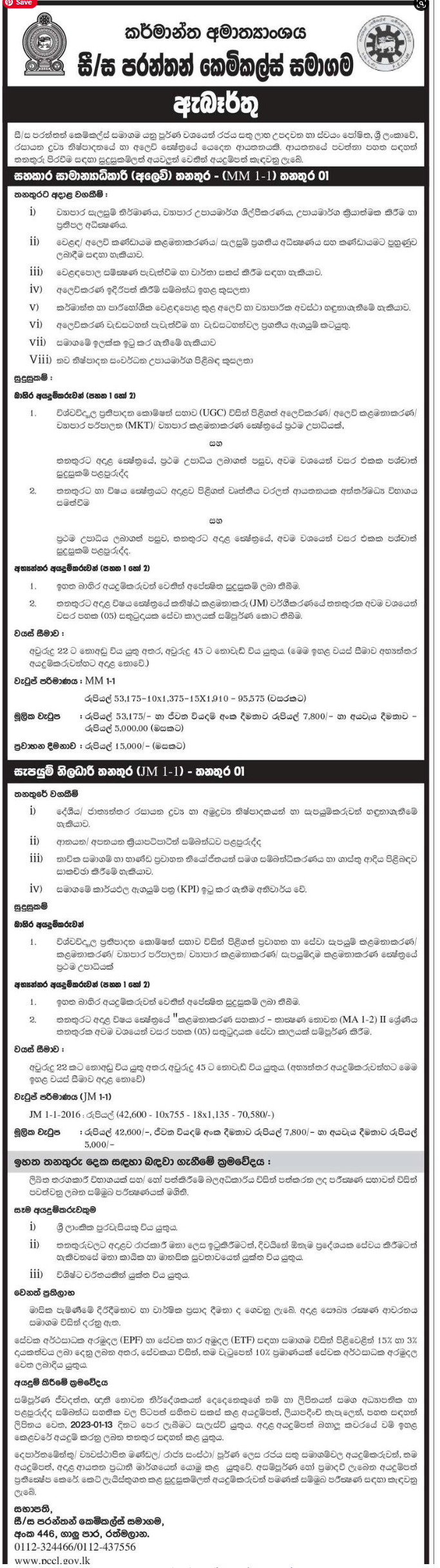 Assistant General Manager, Supplies Officer - Paranthan Chemicals Company Ltd