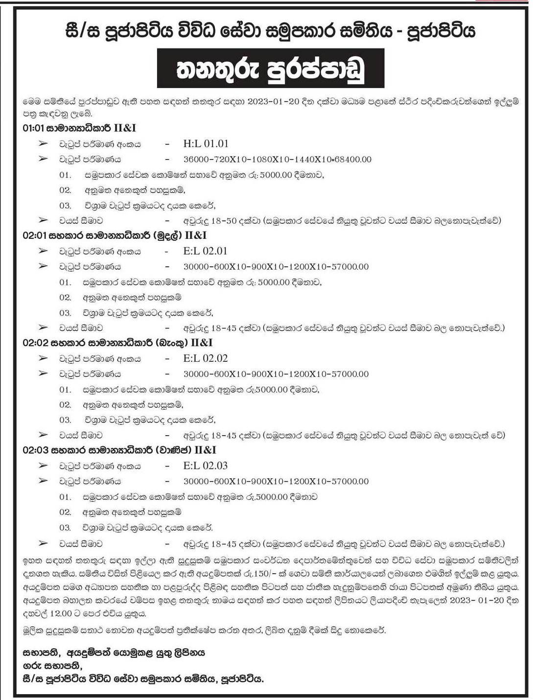 General Manager, Assistant General Manager - Poojapitiya Multipurpose Co-operative Society Limited