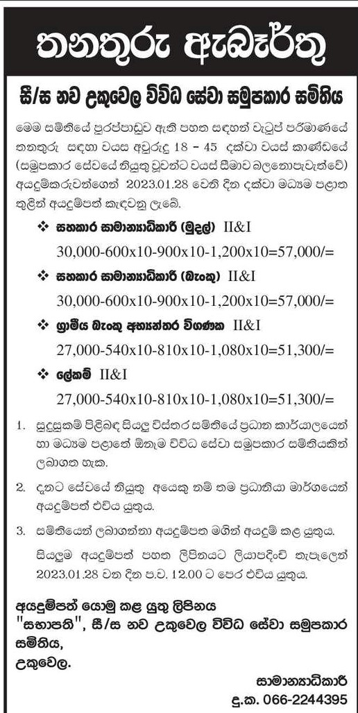 Assistant General Manager, Internal Auditor, Secretary - New Ukuwela Multi Purpose Co-operative Society Ltd