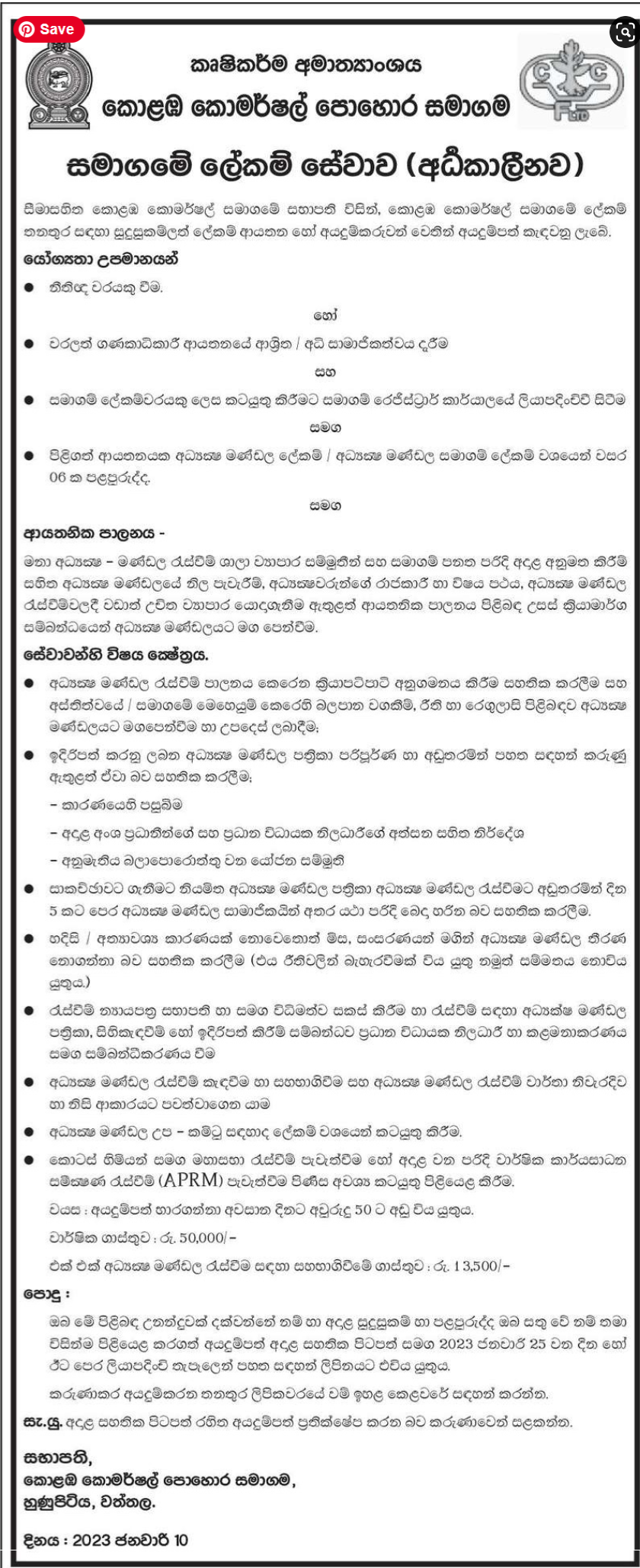 Company Secretary - Ministry of Agriculture
