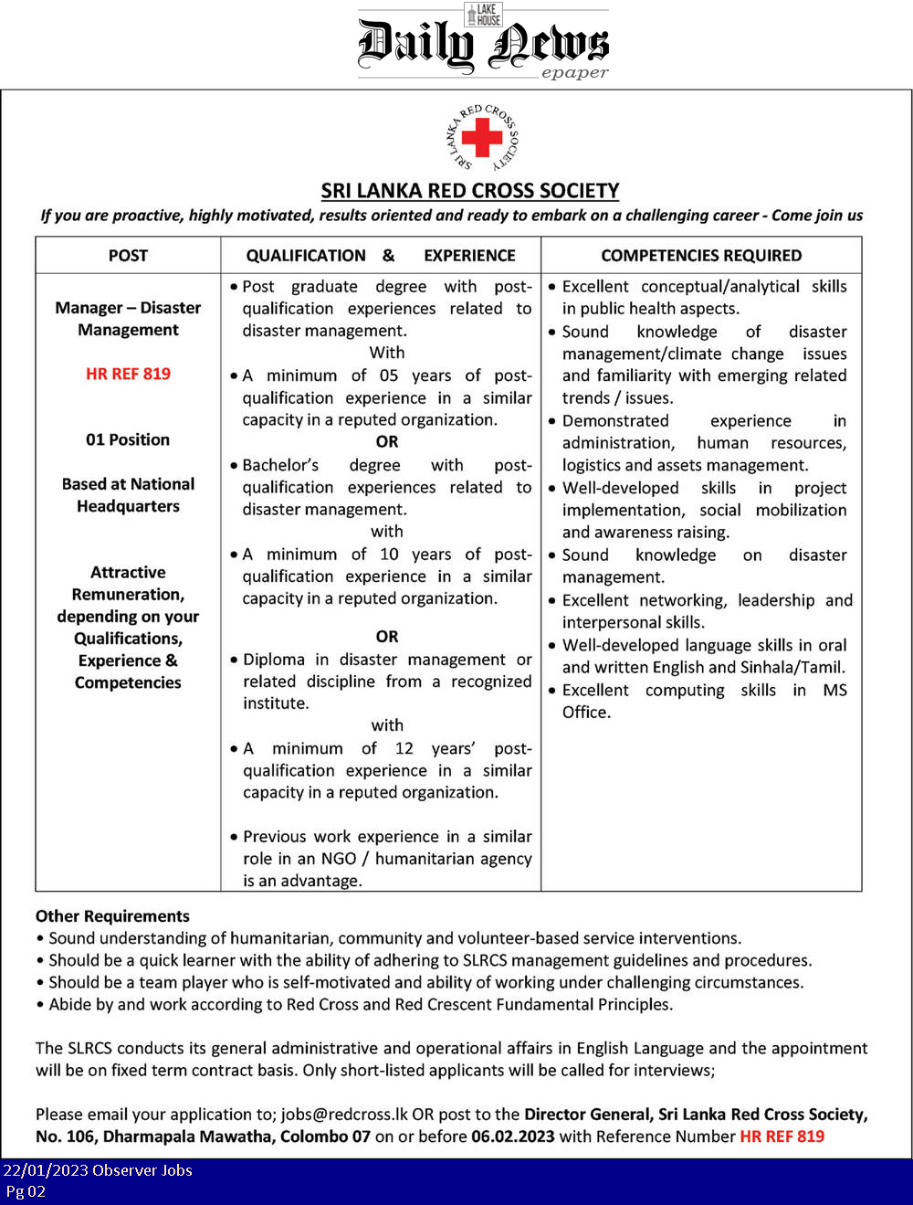 Manager - Sri Lanka Red Cross Society