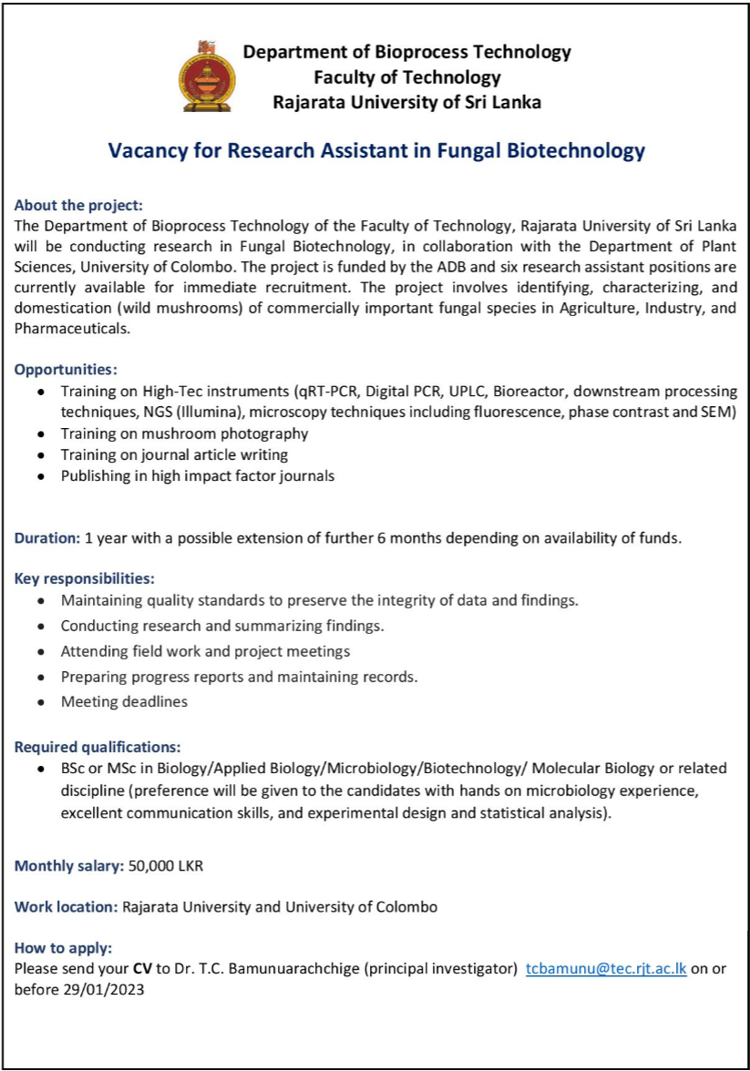 Research Assistant - Rajarata University