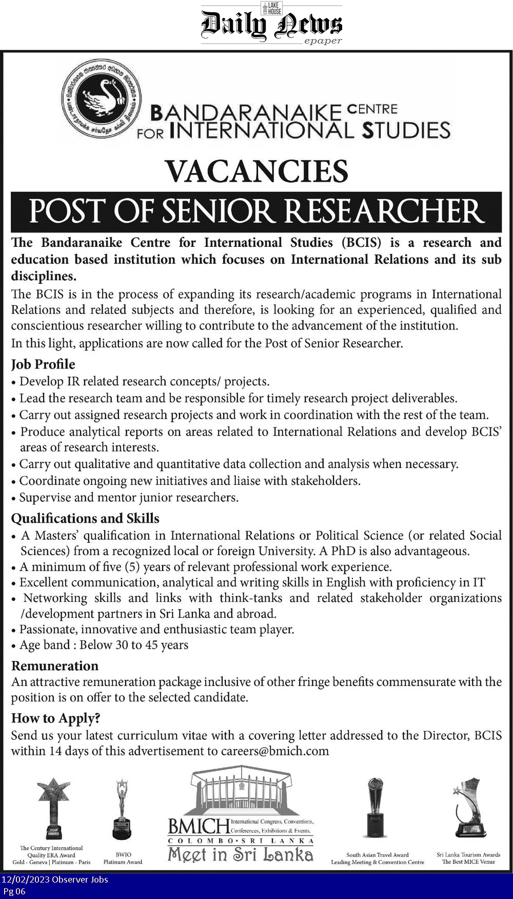 Senior Researcher - Bandaranaike Centre for International Studies