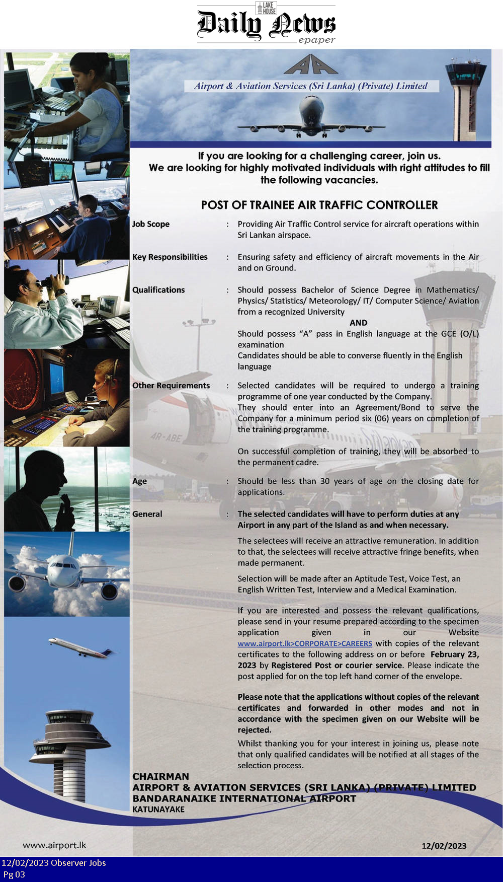 Air Traffic Controller - Airport & Aviation Services (Sri Lanka) Limited