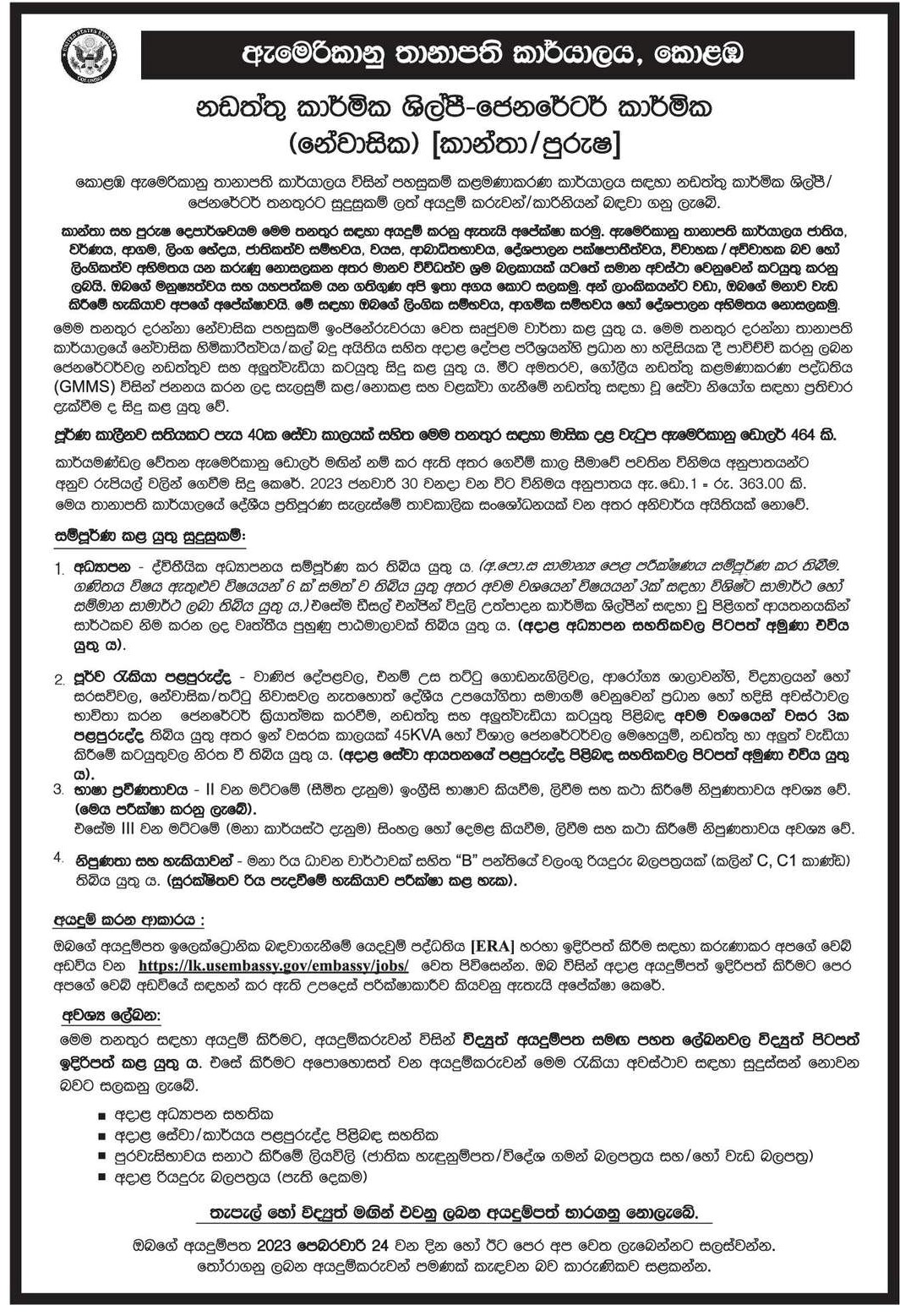 Maintenance Technician - American Embassy